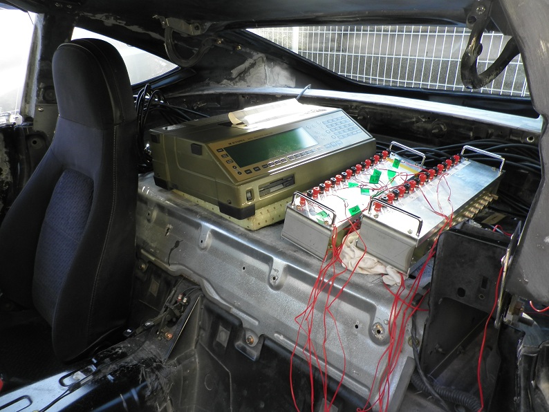 12日は 検査機関により 午後から 車両に 検査用機器及び センサーが12箇所装着され 13日 午後4時過ぎに検査場として なにわ陸運事務所の通常車検検査業務終了後 検査場をお借りして 歪検査を行うことになりました。