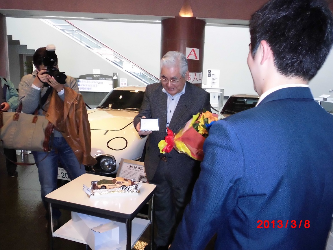 その後 心ばかりの誕生日プレゼントを贈らせていただき 先生からは花束が 生徒さんの1人 副リーダーの嶺澤君からも タミヤの2000GTチョコがプレゼントされ 生徒さんみんなでハッピバースデーを歌っていただけ 細谷四方洋さまも 喜んでいただけました。