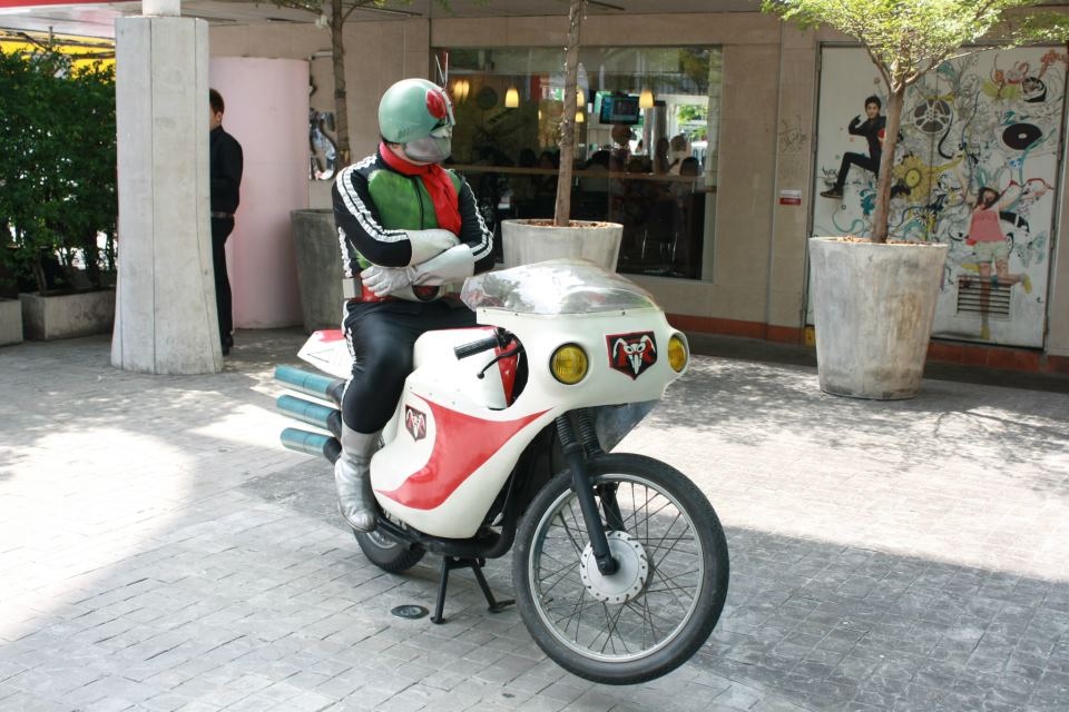 記載しました写真は T氏が仮面ライダーに扮してサイクロン号に乗っている写真です。