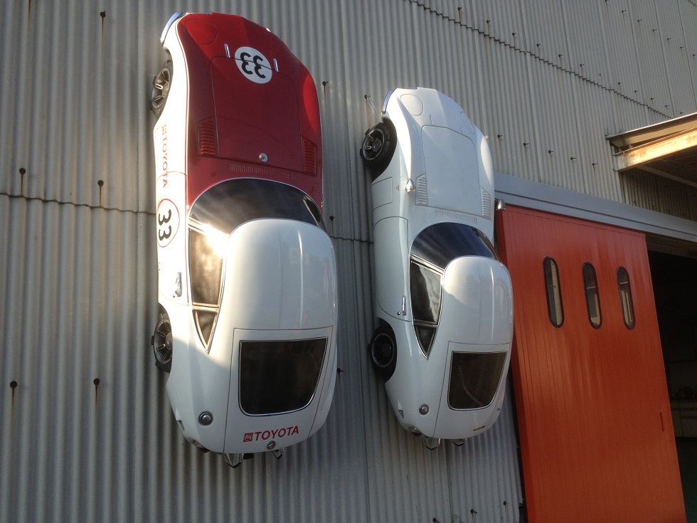 このカットモデルであれば 横向きの2000GTとして展示が可能で 見て すぐわかっていただけますし ご希望の方がいらっしゃっても 正直 1/2サイズは 全長2mで巨大ですので 置く場所に困ると思いますが この形状であれば 壁に掛けていただけるので 絶対に売っていない 面白い製品だと思います。