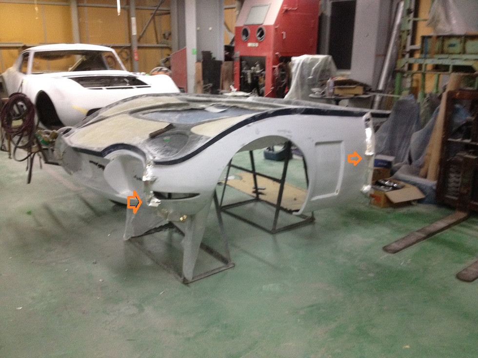 トライアル車も型取りに入る準備となり 完成版ノーマルバージョンもフォグ周りと左右フェンダーのフロントピラー隣接部分のメス型製作のため 型割のためのフランジ製作がほぼ完成しつつあり 明日から型用ゲルコートを塗装し アッパー同様 300番の薄手のFRP積層完了後 600番のFRP積層を8積層していく段取りとなってまいりました。