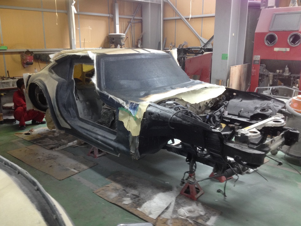 龍妃ファイナル改良作業のカナメである メス型製作も ルーフ&フロントピラー部分 及び 左右タイヤハウスインナー部分が完成し バックパネル部分の2回目以降の積層作業が進行中です