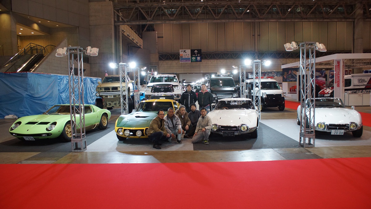 しかしながら 作業は過酷の一言では済まされないほど大変な作業で 正直 通常ならば確実に不可能な作業内容であり 昨年末は勿論 年末も正月も無い状況での作業の上 塗装前にランボルギーニ ミウラは公認済みにしておきましたが 肝心の塗装は roadster AKI が 12月21日から塗装作業開始 完成が搬入日 二日前の1月6日に完成 ランボルギーニ ミウラに至っては 12月30日に塗装引渡しだった為 搬入日の前日 午後4時に車体が完成 ドアー左右 トランク バンパー類に至っては その時点で完成できず 搬入日当日 午前2時に完成してくる始末でして 塗装屋さんも正月返上の上 連日徹夜作業で仕上げをしていただき 搬入日にドアーを運び込んでくれた後 当社にて磨き作業を行っていただけ 作業が終わったのは 午前6時ごろでした 我々スタッフも 当然 一睡もせず徹夜作業で組み付けとなりましたが 何とか roadster AKI と ランボルギーニ ミウラが完成し 当社を出発できたのは 当日の夕方となり 会場に搬入は 深夜12時をまわっておりました。