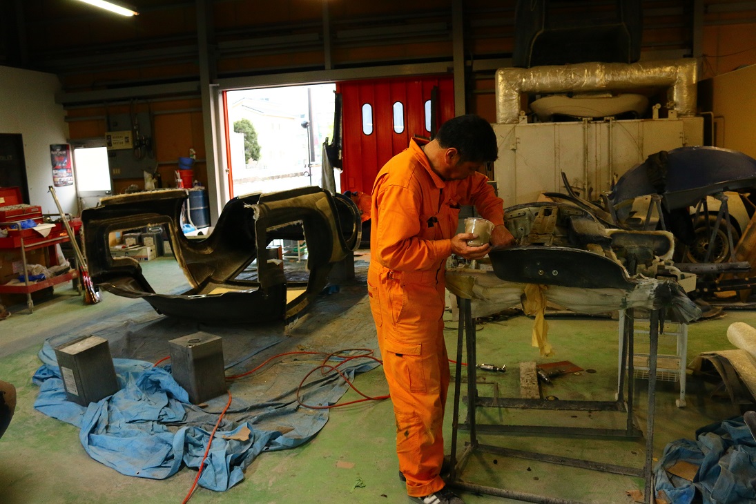 現状は もう少しで フロントマスク 及び リヤーボディーの製作予定台数が完成できますので フロントマスクとリヤーボディーを装着の際に 次に必要となる ドアーインナーの製作に励んでいる状況です。