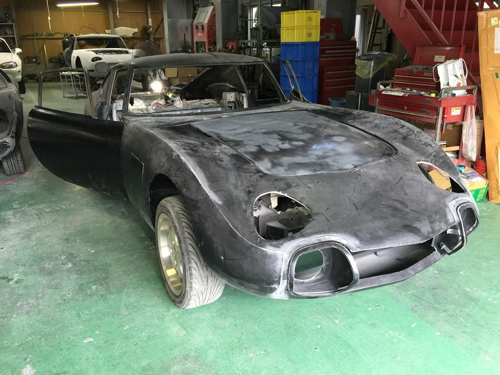 また 今回の改良点の中でも 絶対に改善したかった項目として 車両本体の装着方法の改良がございまして これは 本来FRPと鉄は絶対に付かない為 特殊接着剤を使用して接着しても 走行を繰り返すことで 車体の歪みは どんな車両でも生じる為 接着面から亀裂が張ることを避ける為 すべての箇所をFRPで覆うことにして 亀裂発生が生じない対策を行っておりまして 車体本体はもちろん ドアーも 安全面からノーマルのユーノスの骨格は残し ドアーアウターだけではなく インナーもFRP化した上で ノーマルの骨格を包み込み事にいたしました。