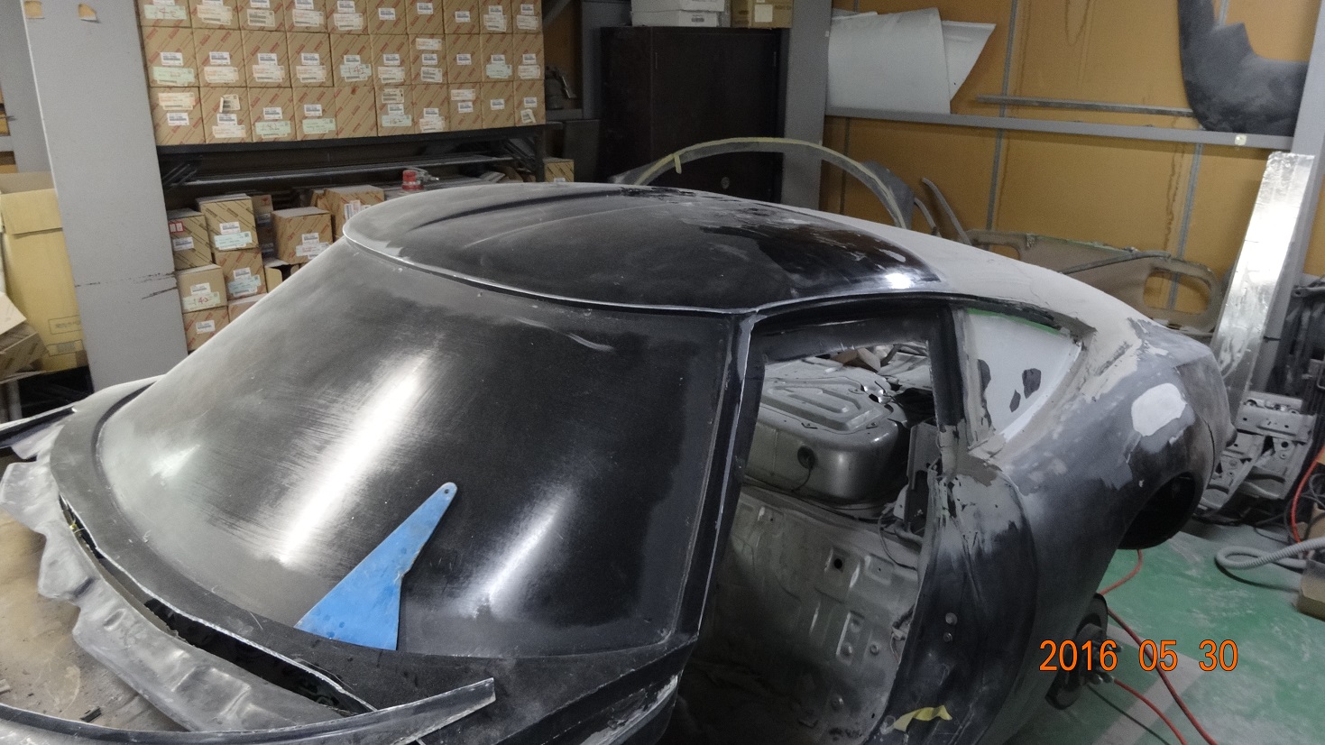 まずは roadster 龍妃ファイナルのボディーと roadster AKI フロントウィンドーの間の隙間を FRP積層で合体させ その後 FRPパテを使用して 綺麗な形状に整えました。