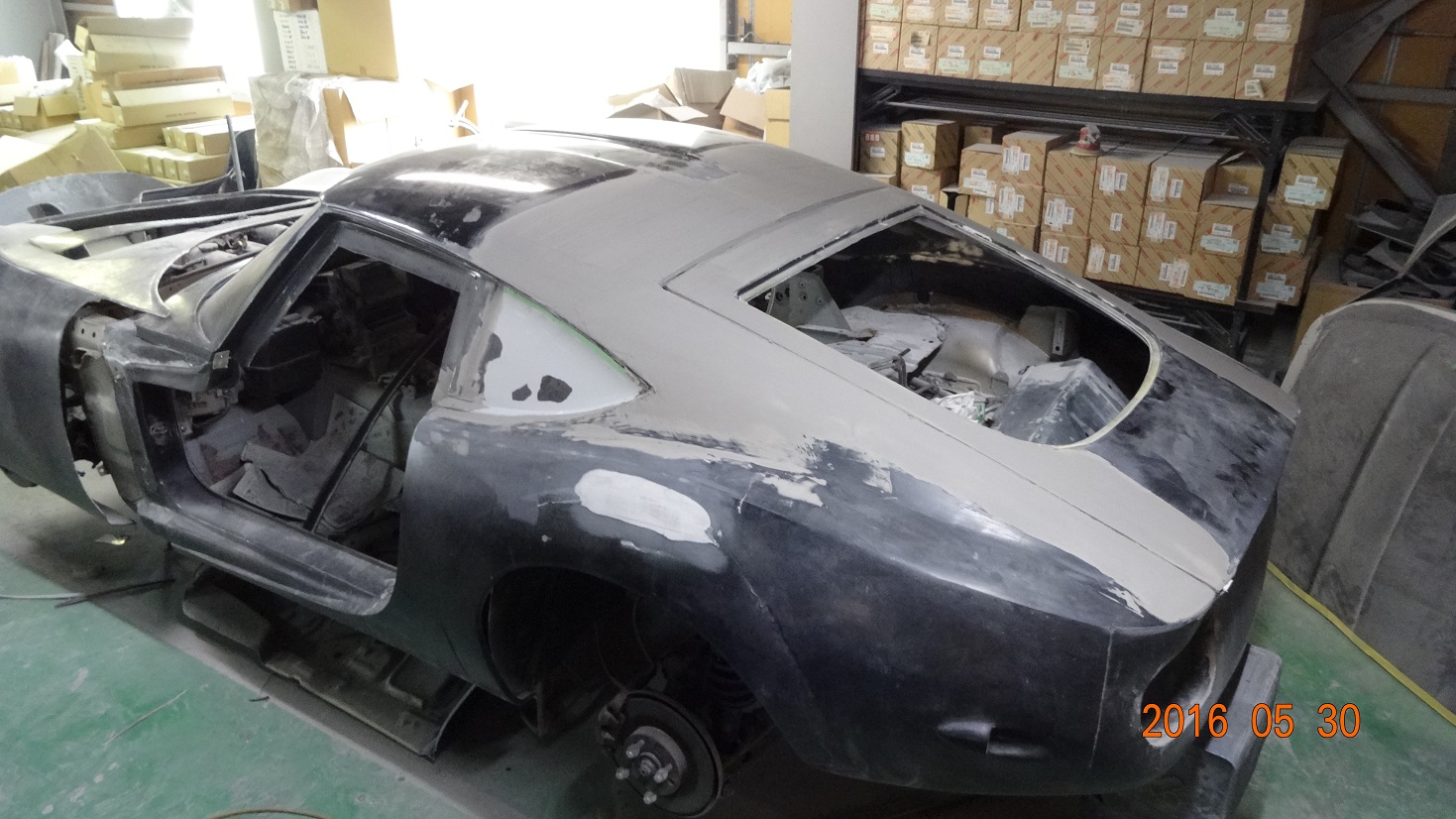 その作業中 ルーフ後部 クォーターピラーとバックドアーの角度調整 リヤータイヤハウスの 接合部の修正を パテ乾燥時間を調整しながら 時間短縮を図りつつ 同時進行させていただき ほぼ 移植作業が完了いたしました。