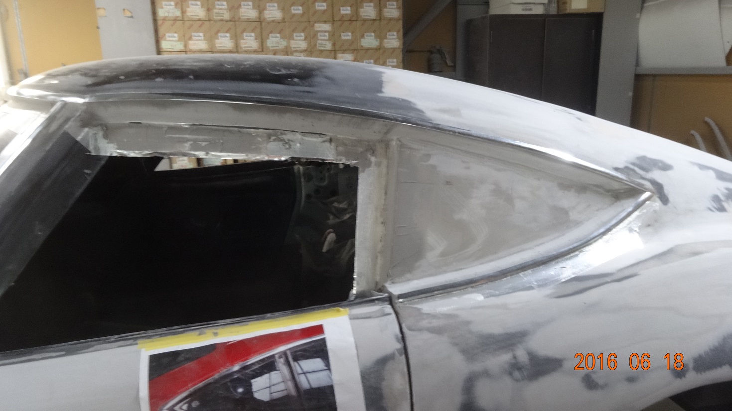 この後 メッキモールが剥がれてこない処置を兼ねて ポリパテ で さらに形状を整え センターピラーの製作 及び 三角窓の窓枠製作を行えば マスターモデルの完成となります。