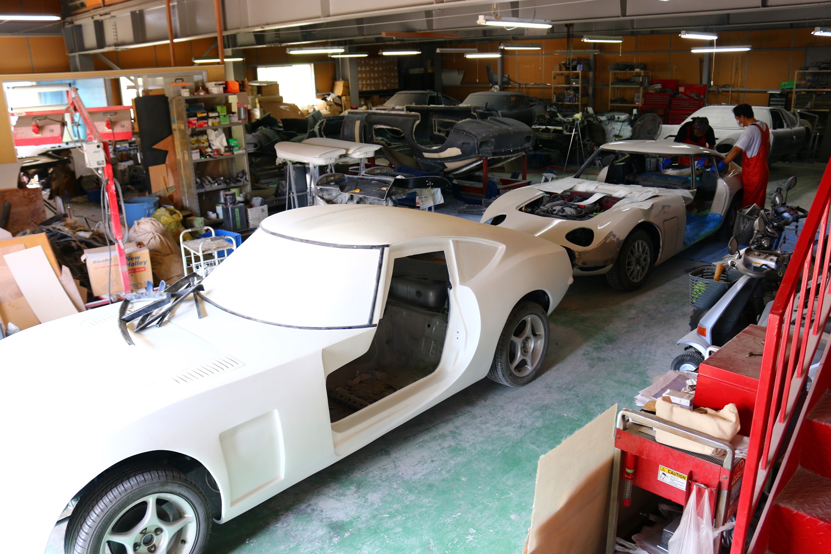 これら roadster AKI の仕事が進行しておりますが 内装 の メス型製作がしてありませんので スタッフには roadster AKI を 工場に搬入の上 試作車のroadster AKI から 内装のメス型を製作していただいておりまして どうしても roadster 龍妃 ファイナル も大変でしたが roadster AKI の内装は より一層狭い為 この暑さもあって 大変な作業ですが 今週中には 後ろ周りの内装のメス型が完成できるのではないかと思っております。
