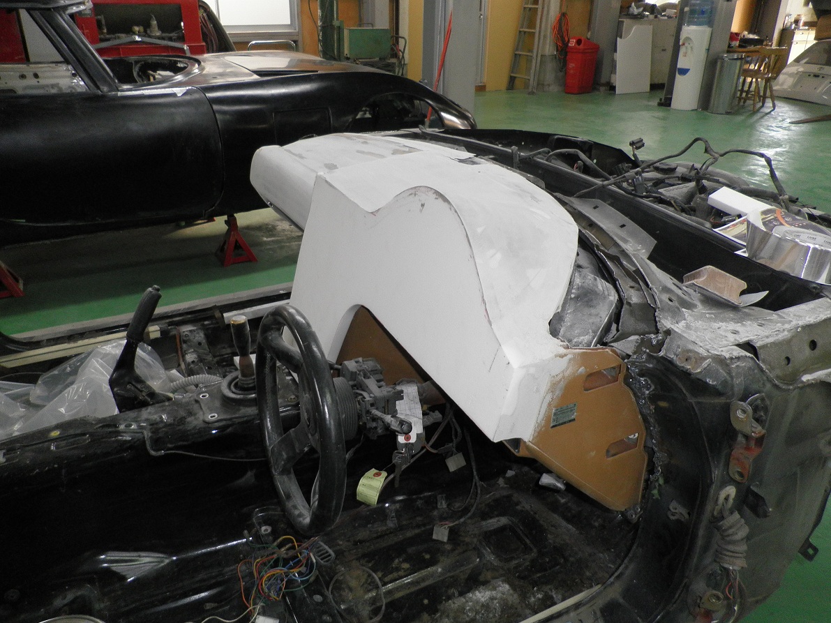 写真はメス型製作のための割り型フランジを張ったところですので まだ詳しい感じはわかっていただけないと思いますが 車両完成時は量販車との違いが 一目でわかる良い仕上がりになったと思っておりますので ご期待いただけると幸いです。