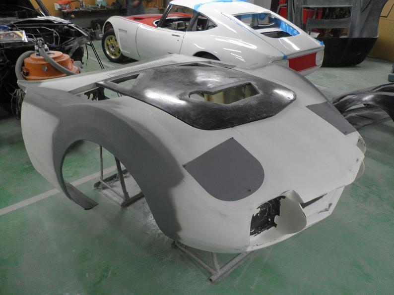 フェンダーの膨らみは ノーマル車よりも2〜3cmほど上部に向かって膨らんでいるのは細谷四方洋 様からお聞きしておりましたので 修正済みですが ドアーに向かってのフェンダーの膨らみのラインが ノーマル車とは違い 極端に落ちる形状になっており 当初作成したラインが極端すぎたために 細谷四方洋様からのご指摘で若干ノーマルに近くさせていただきましたが 富士GAZOO FESTIVALで拝見しました四国自動車博物館さま製作のレーシングを見させていただき もう少しキツイカーブにしたほうが良いと思い 若干ですがカーブをキツク修正いたしました。